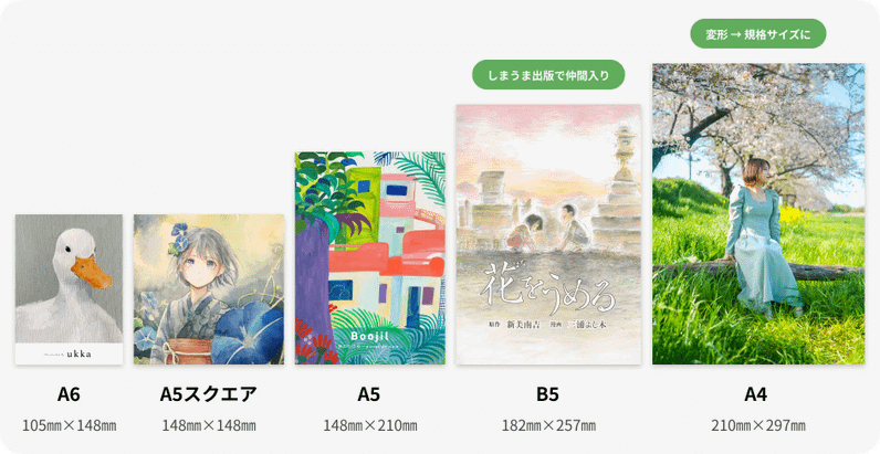 しまうまプリントのフォトブックでは、文庫サイズ(A6)、A5スクエア、A5サイズ、A4サイズの4サイズ展開をしておりましたが、しまうま出版では新たにB5サイズを選択いただけるようにいたしました。
